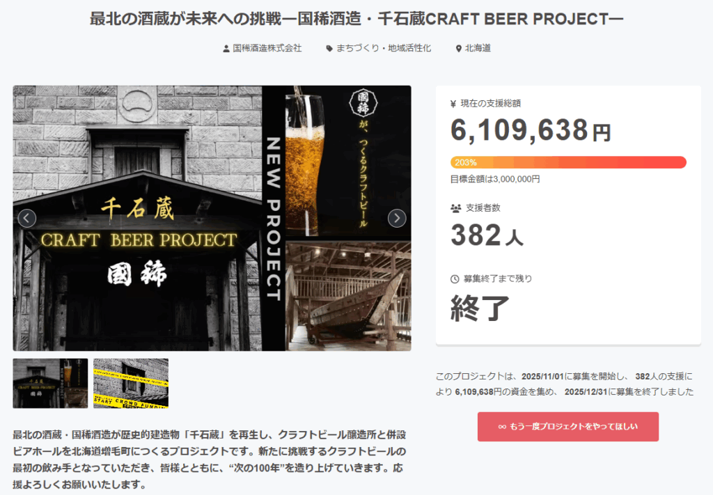 【御礼】「国稀酒造・千石蔵CRAFT BEER PROJECT」クラウドファンディング目標達成のご報告